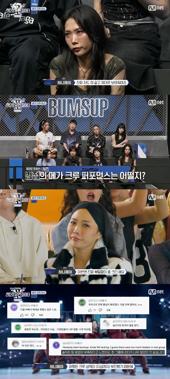 [메디먼트뉴스 김수현 기자] Mnet '월드 오브 스트릿 우먼 파이터'(이하 '월드 오브 스우파')에서 한국 팀 '범접'이 메가 크루 미션에서 압도적인 점수로 1위를 차지하며 극적인 반전을 이뤄냈다. 디렉터 허니제이의 독창적인 기획과 멤버들의 뛰어난 표현력이 심사위원들의 극찬을 이끌어냈다.